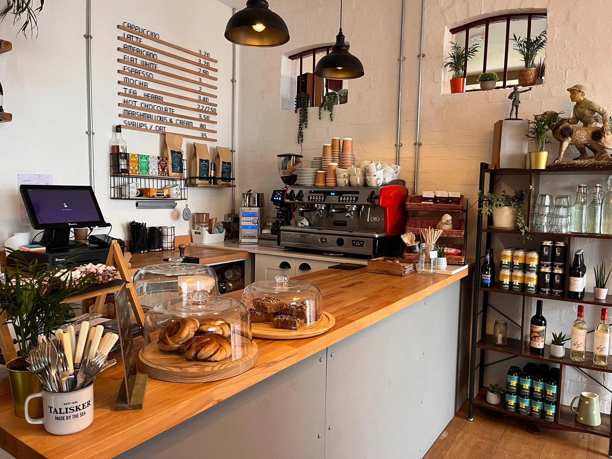 The Guardhouse Cafe bar serves breakfast from 8am - 11:30 lunch 12:30 - 3 cakes, savoury snacks and hot drinks 3-4.. on Fridays and Saturdays we open all the way through till 10pm serving evening food 6-9 and a fully licensed bar.
